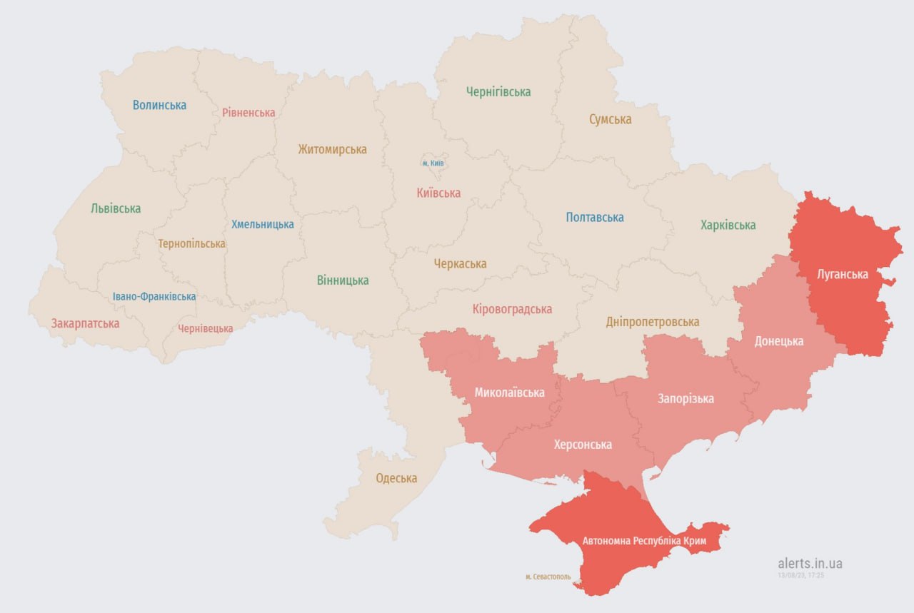 17:04 Повітряна тривога у низці областей. Повідомляють про загрозу застосування балістичних ракет.