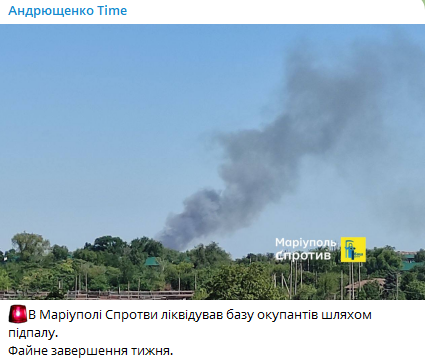 Радник мера Маріуполя Петро Андрющенко повідомив, що сили спротиву ліквідували базу окупантів шляхом підпалу.