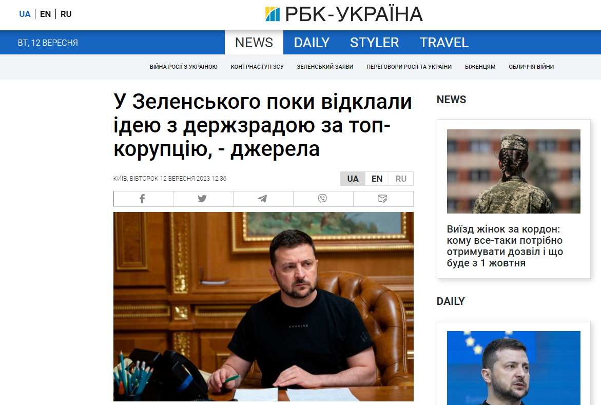 "Я поставив завдання. Законодавцям буде запропоновано прирівняти корупцію до державної зради на воєнний час. Я розумію, що це не може діяти постійно, але на воєнний час, я думаю, це допоможе", - сказав Зеленський в інтерв'ю наприкінці серпня.