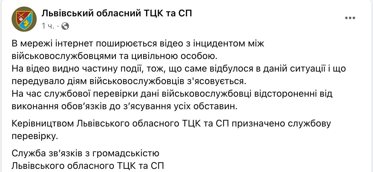 За інцидентом із побиттям чоловіка у ТЦК міста Самбір буде проведено службову перевірку.