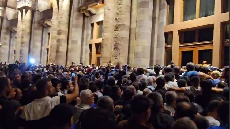 Судячи з відео, мітингувальники намагаються розпочати штурм будівлі.