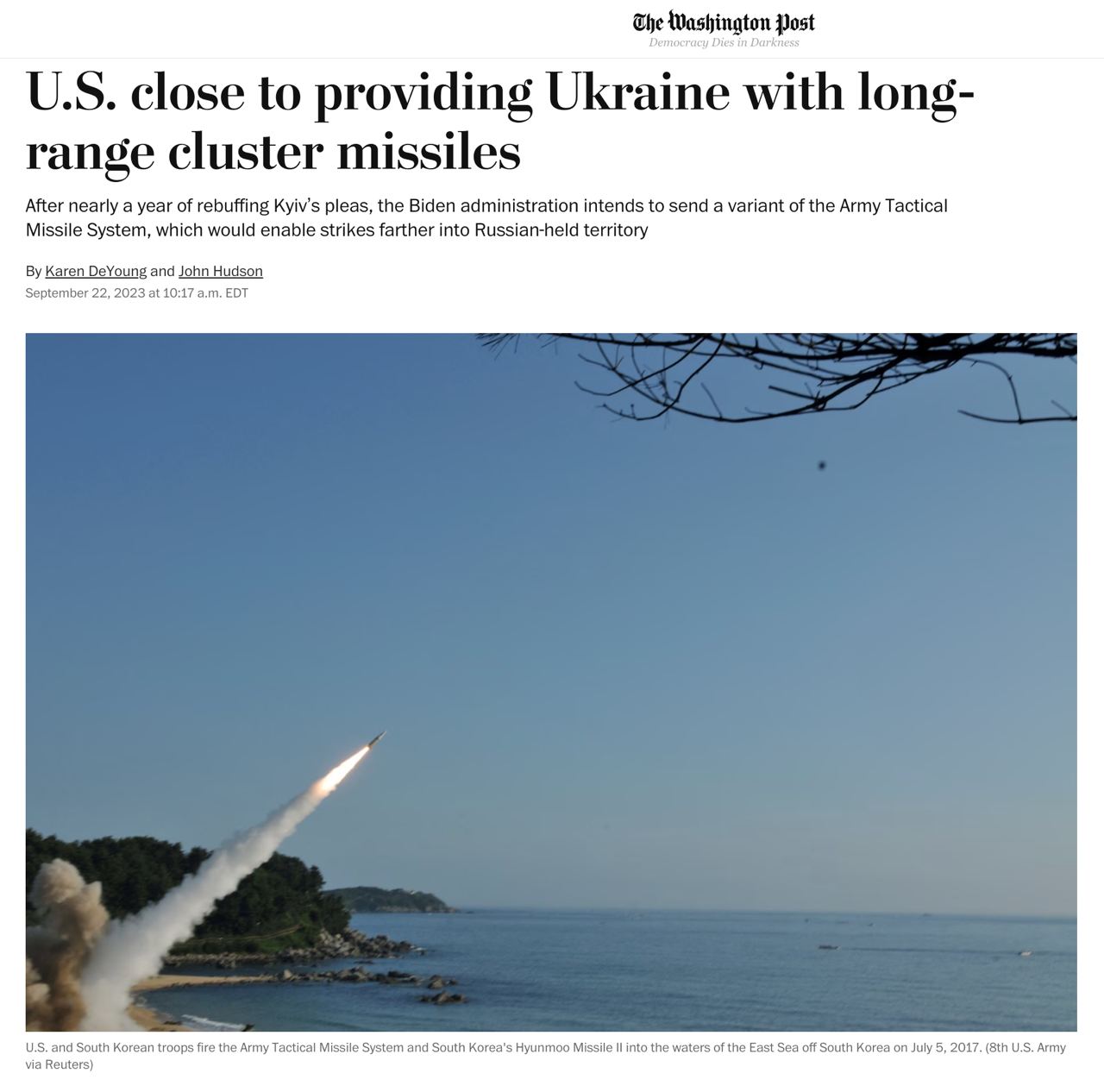 США близькі до передачі Україні далекобійних ракет ATACMS, які лише оснащені касетними бомбами, а не одиночною боєголовкою.
