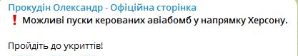 07.35 Можливі пуски керованих авіабомб у напрямку Херсона, повідомляють у Херсонській ОВА.