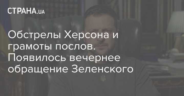 Обстріли Херсона та грамоти послів. З'явилося вечірнє звернення Зеленського