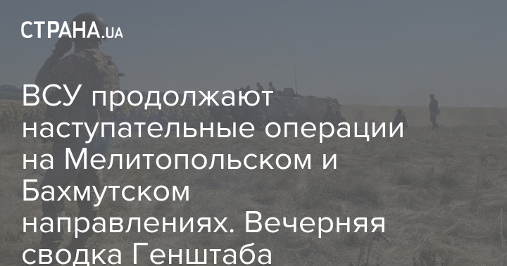 ЗСУ продовжують наступальні операції на Мелітопольському та Бахмутському напрямках. Вечірнє зведення Генштабу