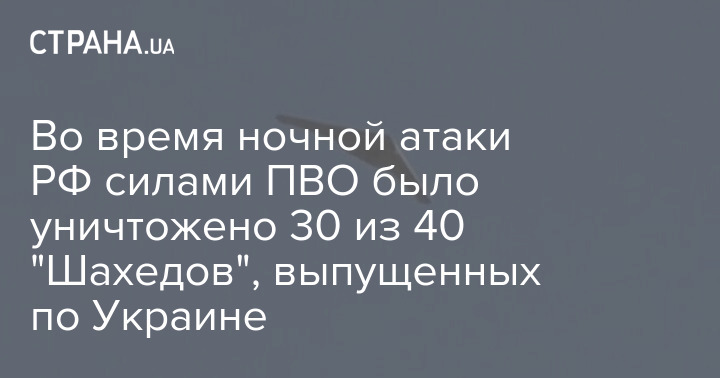 "Силами та засобами Повітряних Сил у взаємодії з протиповітряною обороною Сил оборони України знищено 30 "Шахедів" у межах Одеської, Миколаївської та Вінницької областей", - йдеться у повідомленні.