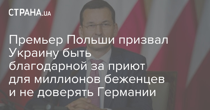 Прем'єр-міністр Польщі Матеуш Моравецький закликав Україну бути вдячною за те, що Польща дала притулок мільйонам українців, і не довіряти Німеччині.
