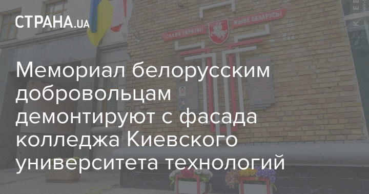 З фасаду коледжу Київського національного університету технологій та дизайну на наказ ректора демонтують Меморіал білоруським добровольцям.