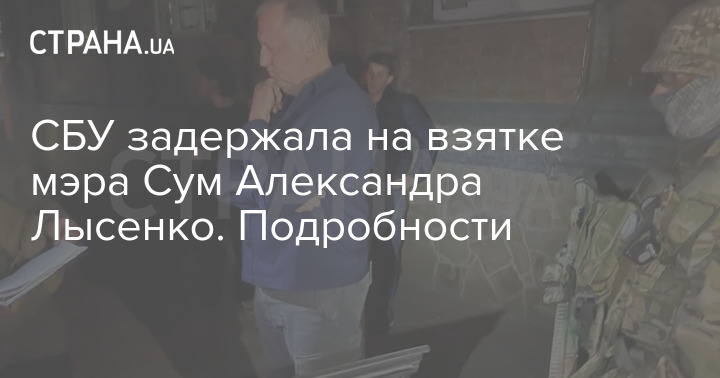 Служба безпеки України (СБУ) затримала на хабарі мера Сум Олександра Лисенка.
