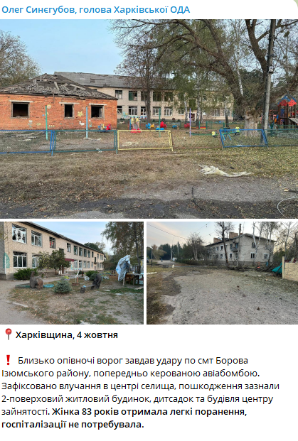 Вночі РФ вдарила авіабомбами по Боровій у Харківській області