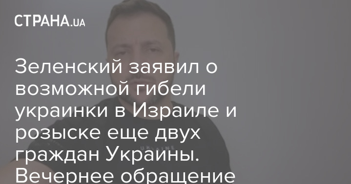 Зеленський заявив про можливу загибель українки в Ізраїлі та розшуку ще двох громадян України. Вечірнє звернення