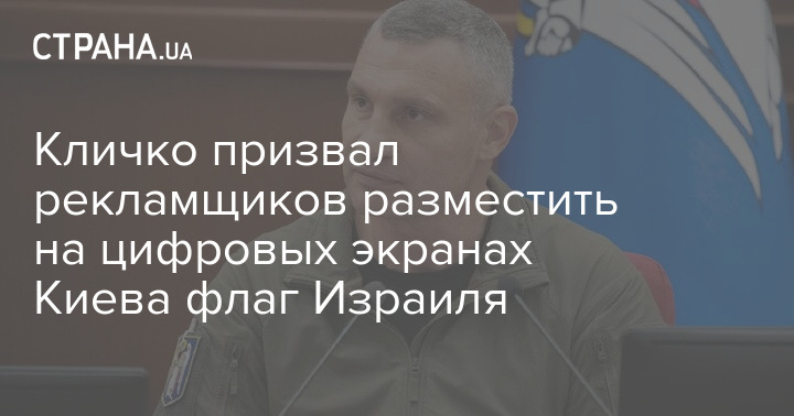 Мер Києва Віталій Кличко заявив, що сьогодні ввечері, о 20:00, на цифрових носіях реклами на вулицях столиці України майорить прапор держави Ізраїль.