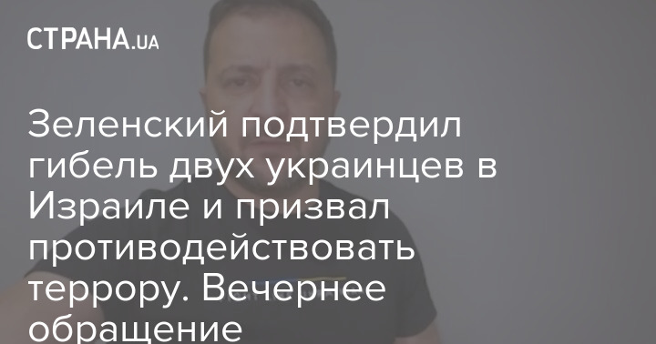 Зеленський підтвердив загибель двох українців в Ізраїлі та закликав протидіяти терору. Вечірнє звернення