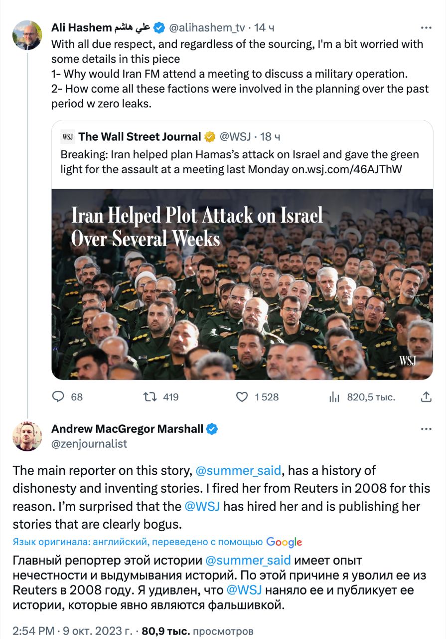 Журналіст WSJ, який написав про причетність Ірану до атаки ХАМАС на Ізраїль, раніше попадався на фейках