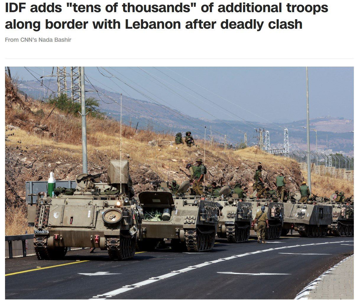 Ізраїль перекинув десятки тисяч додаткових військових на кордон із Ліваном через загрозу вторгнення "Хезболли".