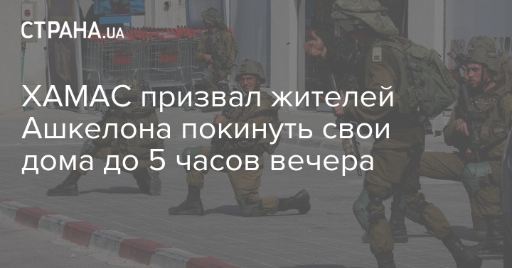 Палестинський рух ХАМАС закликав жителів ізраїльського міста Ашкелон залишити свої будинки до п'ятої години вечора сьогодні.