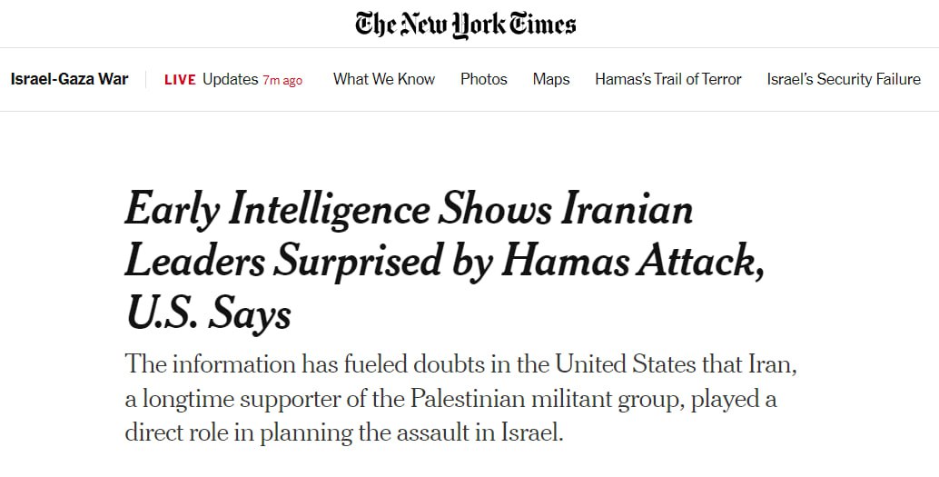 США отримали розвіддані про те, що керівництво Ірану було здивоване атакою ХАМАС на Ізраїль, що ставить під сумнів чутки про причетність Ірану.