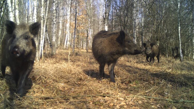 Чорнобильський радіаційно-екологічний біосферний заповідник показав знімок кабанів, зроблений фотопасткою проекту "Полісся – дика природа без кордонів". Такі камери встановлені на території зони відчуження ЧАЕС.