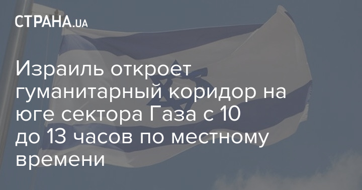 Ізраїль заявив, що дозволить відкрити гуманітарний коридор на півдні сектора Газа з 10 до 13 години за місцевим часом.
