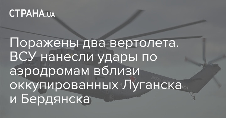 Сьогодні вночі Збройні сили України завдали ударів по російських вертольотах у тилу - поблизу окупованих Луганська та Бердянська. Вражені два вертольоти.