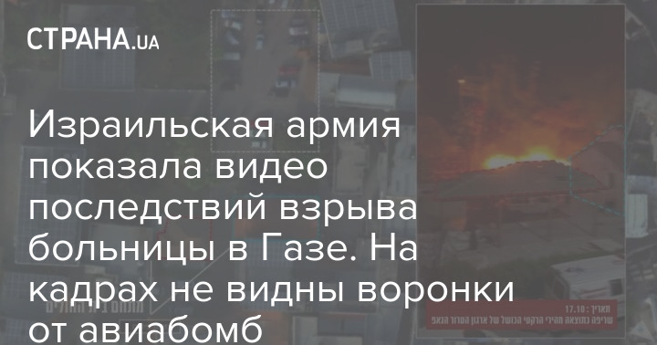 Ізраїльська армія показала відео наслідків вибуху лікарні у Газі. На кадрах не видно вирви від авіабомб