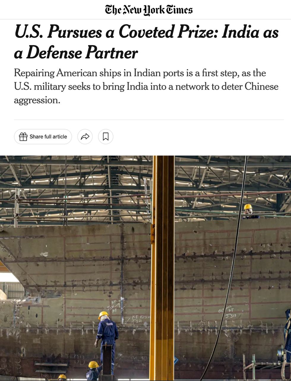 За рік уже три американські судна прибули до Індії на ремонт. Таким чином США прагнуть отримати доступ до більшої кількості місць, де вони не мають власних військових об'єктів.