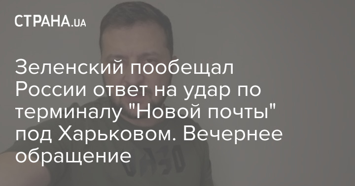 Зеленський пообіцяв Росії відповідь на удар по терміналу "Нової пошти" під Харковом. Вечірнє звернення