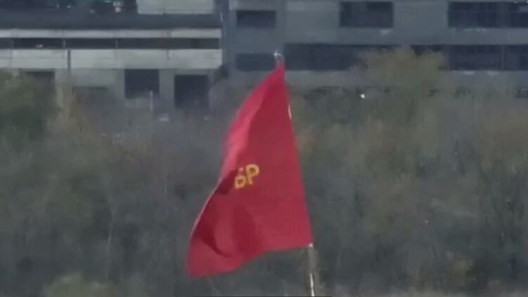 З'явилося відео російського та червоного бригадних прапорів над Авдіївським териконом, який, як стверджують росіяни, там встановили військові РФ.