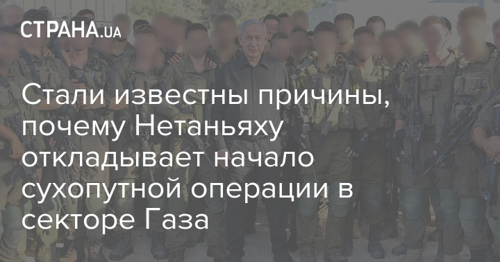 Прем'єр-міністр Ізраїлю Біньямін Нетаньяху відкладає початок сухопутної операції у секторі Газа, оскільки не впевнений, що ЦАХАЛ готовий до неї. Політик також хоче виграти час для переговорів щодо звільнення заручників.