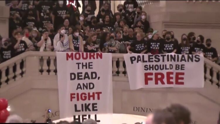 Раніше організація "Єврейський голос за мир", яка виступає проти дій Ізраїлю в секторі Газа, проводила акцію протесту в одній із будівель Конгресу США у Вашингтоні. Активісти закликали припинити бойові дії та зупинити військову допомогу США Ізраїлю.