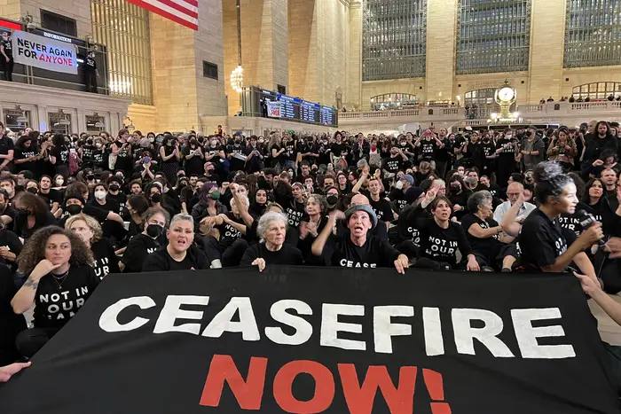 Сотні протестувальників заблокували Центральний вокзал Нью-Йорка, вимагаючи припинення вогню у секторі Газа. Про це повідомляє CBS News.