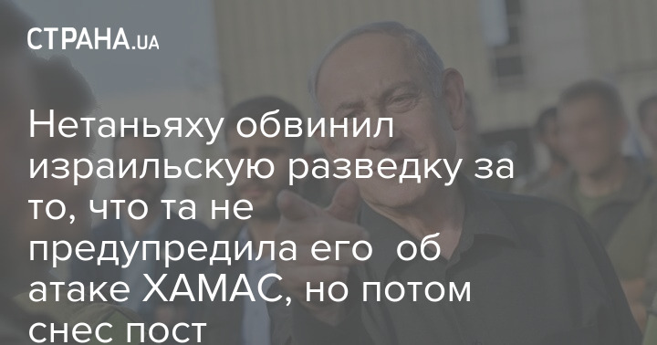 Нетаньягу звинуватив ізраїльську розвідку за те, що та не попередила його про атаку ХАМАС, але потім зніс допис