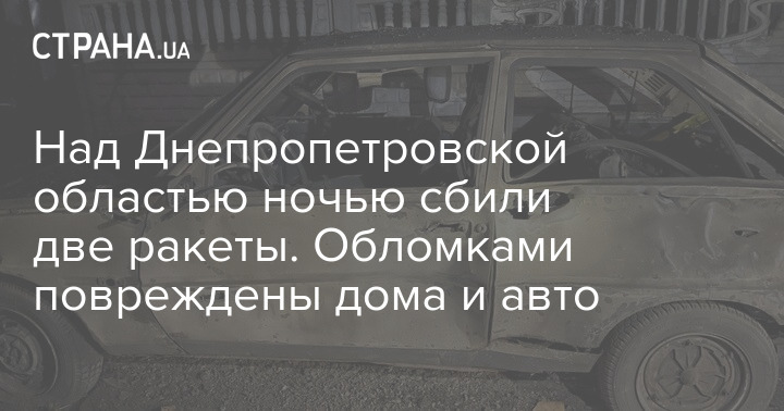 Сьогодні вночі над Дніпропетровською областю збили дві ракети. Уламки впали в Дніпровському районі. Там пошкоджено п'ятиповерхівку, приватний будинок та автомобіль.
