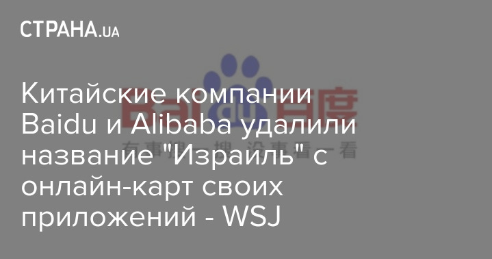 Назва "Ізраїль" видалена з онлайн-карток додатків провідних китайських компаній Baidu та Alibaba.