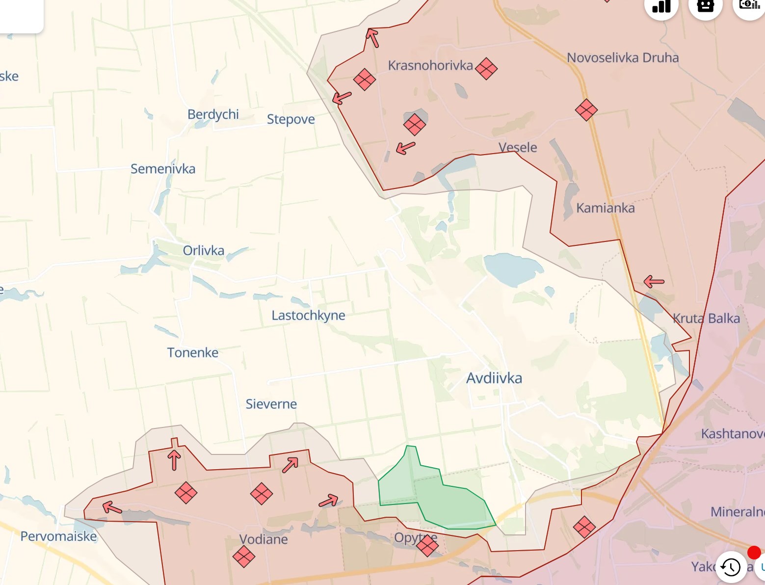 Також частини РФ намагаються просунутися до Авдіївського коксохімзаводу з боку терикону - але поки що, за даними паблік, безуспішно. Російські паблики заявляють про зустрічні бої поряд із заводом, а також про свої спроби пробитися до Степового під Красногорівкою.