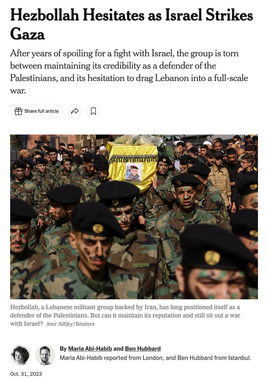 Ліванський чиновник, який розмовляв із "Хезболлою", сказав виданню, що цей рух назвав своєю червоною лінією для втручання знищення ХАМАСу. Організація готова вступити у війну, якщо палестинське угруповання буде "на останньому подиху".