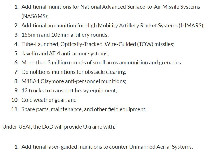 Пентагон повідомив подробиці про пакет. Зі складів поставлять: