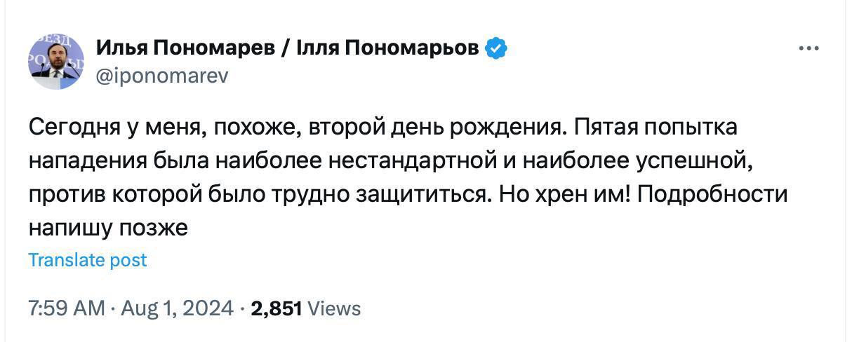 "П'ята спроба нападу була найбільш нестандартною та найбільш успішною, проти якої було важко захиститися", - пише Пономарьов у Х.