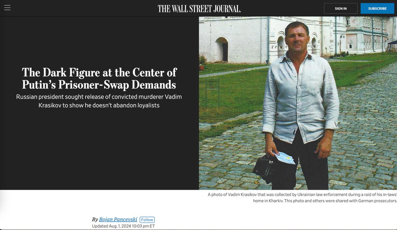 Головною умовою Путіна для обміну ув'язненими із Заходом була видача Вадима Красікова - WSJ