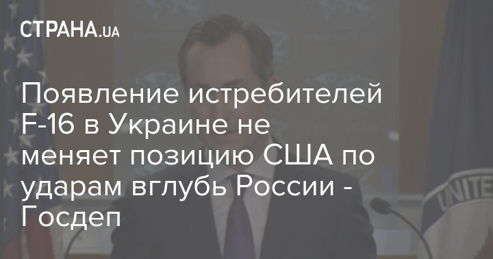 Поява винищувачів F-16 в Україні не змінює позицію США щодо ударів углиб Росії - Держдеп