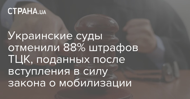 Суди скасували 88% штрафів ТЦК, за якими було подано позови після набрання чинності новими правилами мобілізації.