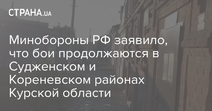 Російське міноборони заявило, що бої продовжуються в Судженському та Коренівському районах Курської області РФ, просування ЗСУ за минулу добу "не допущено", "спроби прориву окремих підрозділів углиб території на Курському напрямку припиняються".