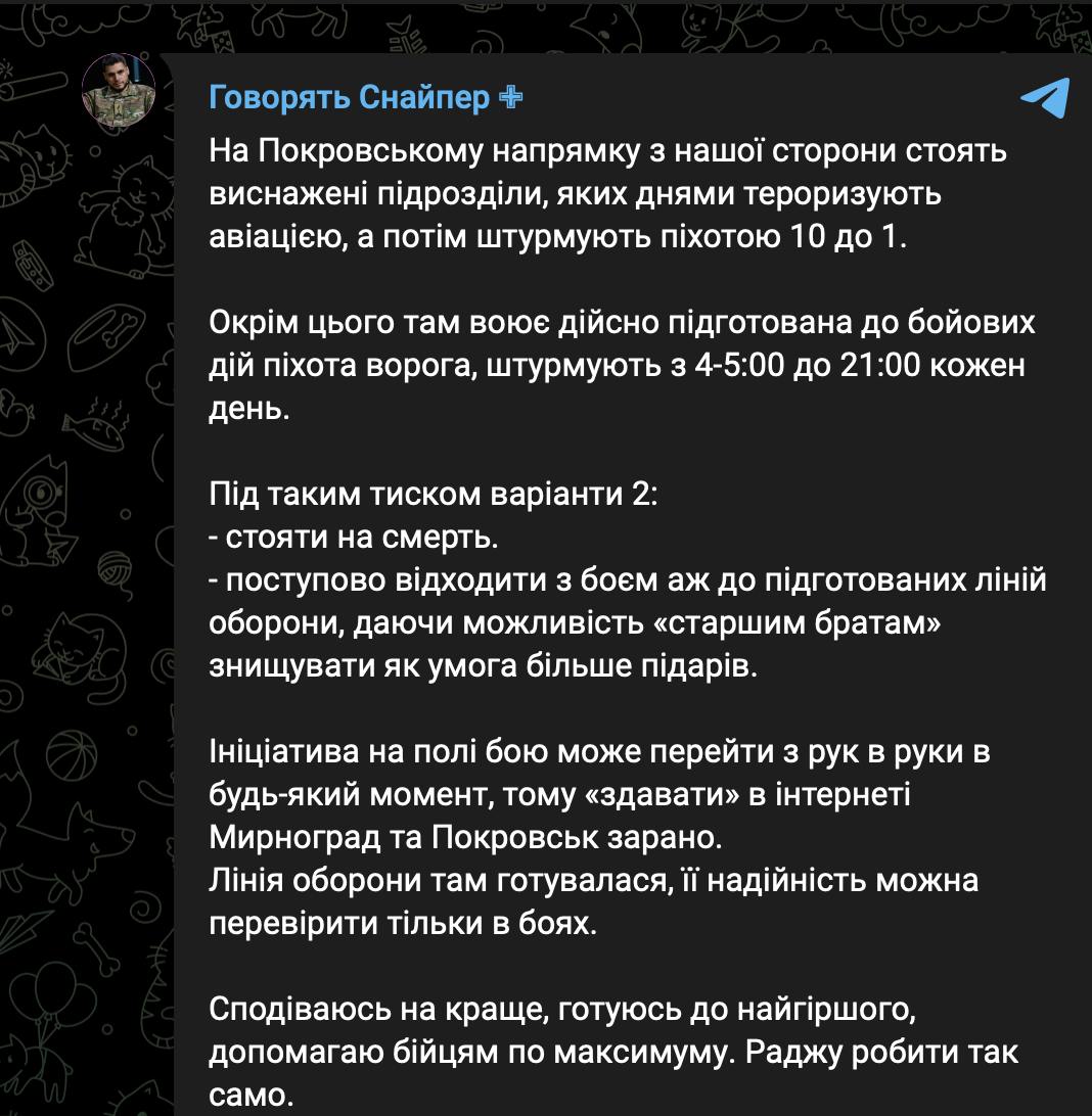 8.43 На Покровському напрямку у ВСУ "стоять виснажені підрозділи, які цілими днями тероризуються авіацією, а потім штурмуються піхотою 10 до 1".