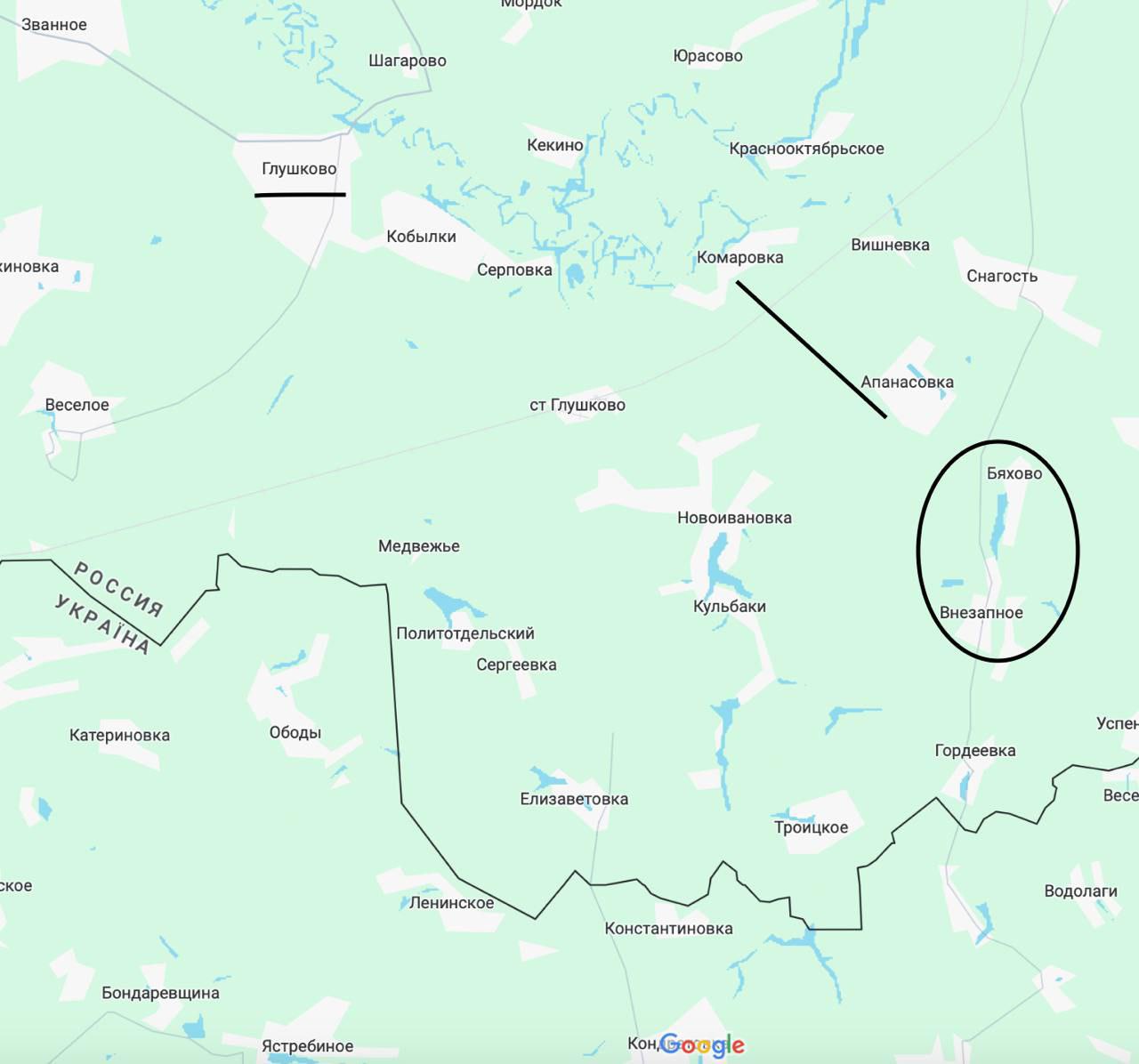 Також учора російські паблики масово писали про атаки ЗСУ у Глушківському районі, який розташований ще на захід - на південь від Рильська.