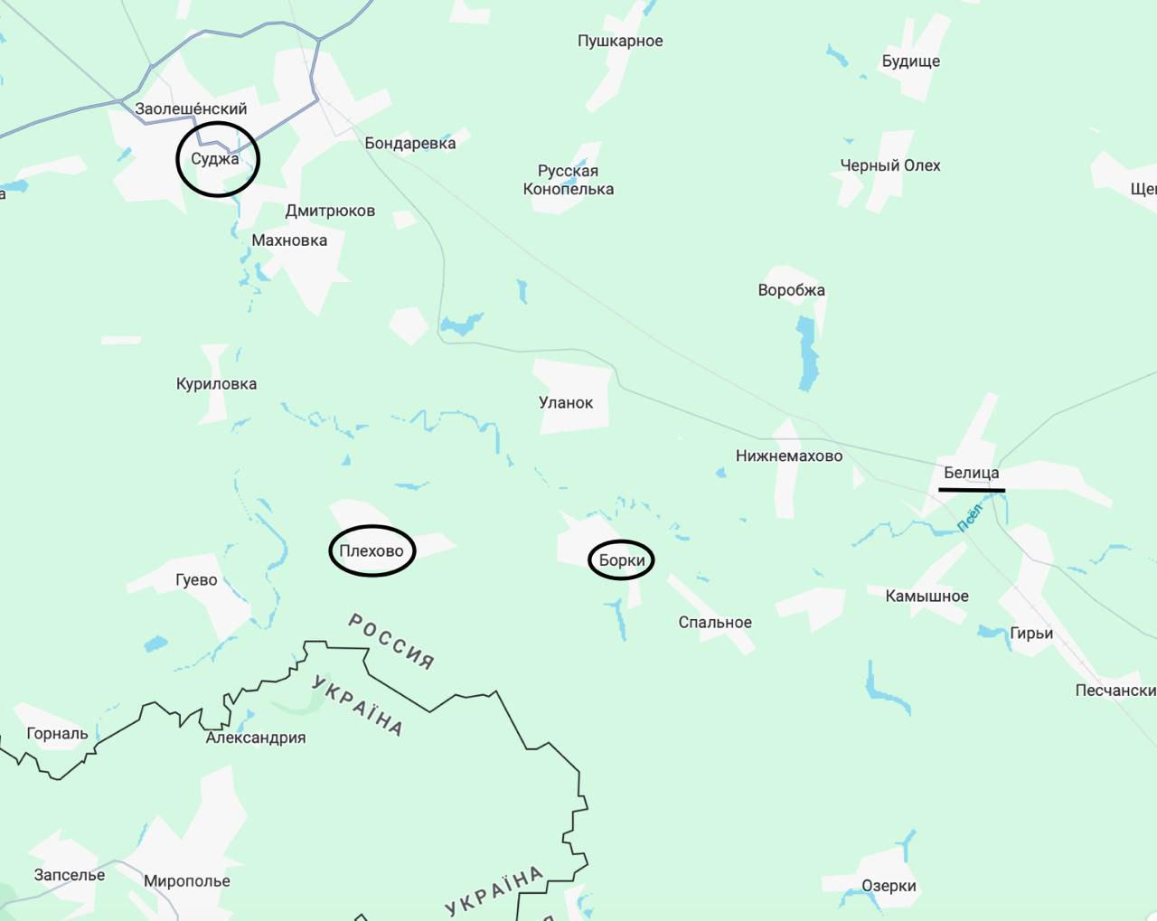 Про зміни в районах Суджі та Коренево поки не повідомляється. У напрямку Льгова йдуть російські спроби усунути проникнення українських ДРГ. Суджа, якщо оцінювати відео, які все частіше звідти з'являються, перебуває під контролем України. При цьому російські телеграм-канали заявляють, що Україна не змогла взяти Мартинівку на північ від Суджі курскою траси.
