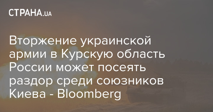 Вторгнення української армії в Курську область Росії може посіяти розбрат серед союзників Києва - Bloomberg