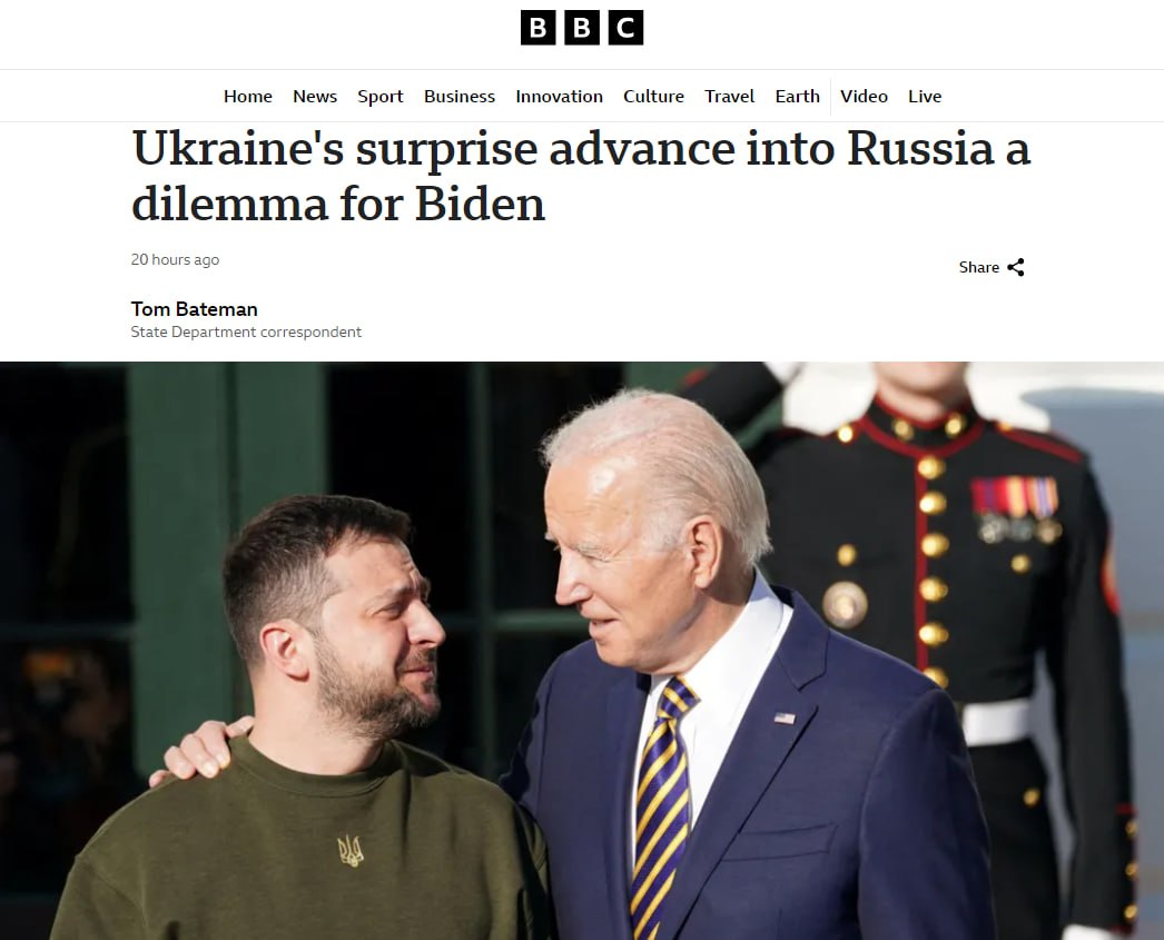 Тим часом британська ВВС пише, що наступ на Курськ ставить перед Америкою нову дилему - у буквальному та переносному значенні.