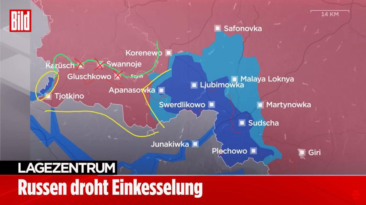 Як пише військовий експерт Bild Юліан Ріпке в цьому районі російські війська близькі до "котла" на південь від річки Сейм, мости через яку зруйнували ЗСУ. За даними Ріпці всередині ризикують опинитися до 3000 російських солдатів.