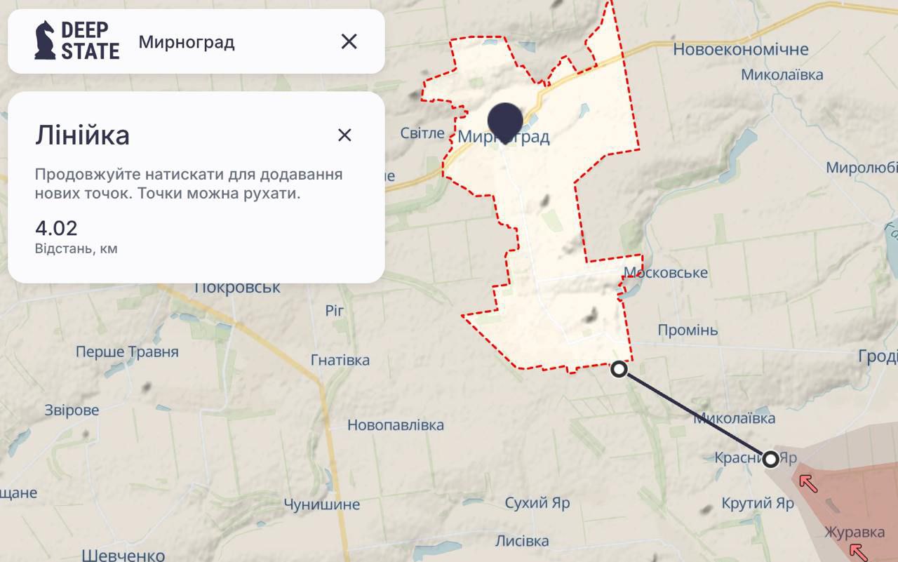 Мирноград на Покровському напрямку знаходиться за 4-5 кілометрів від лінії фронту.