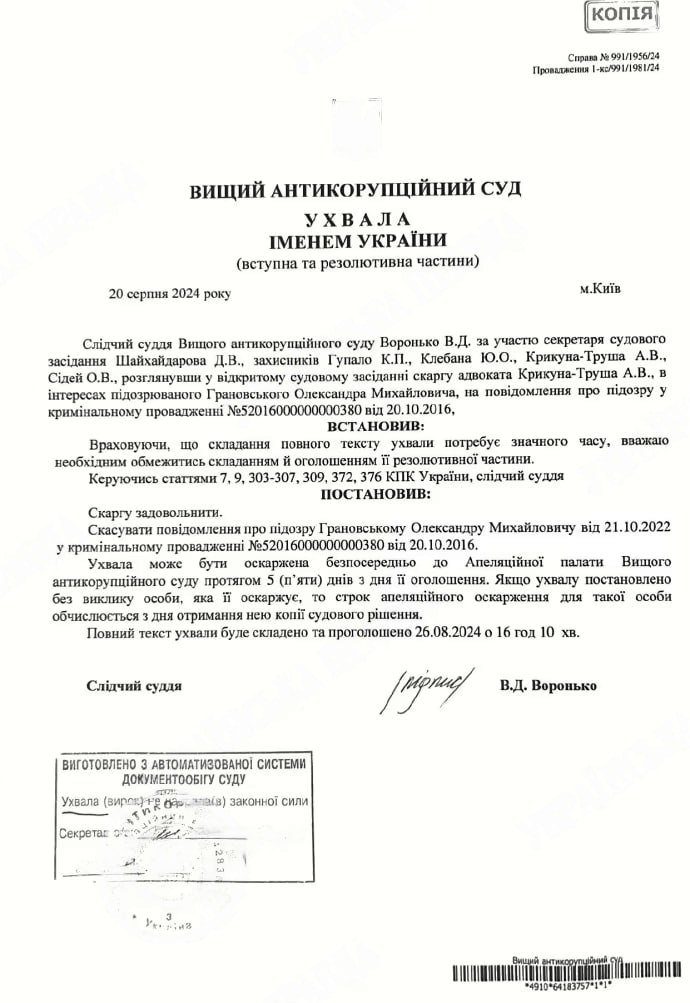 Екс-нардепу Грановському суд скасував підозру від НАБУ